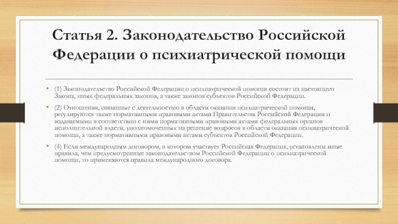 Слайд 18Статья 2. Законодательство Российской Федерации о психиатрической помощи