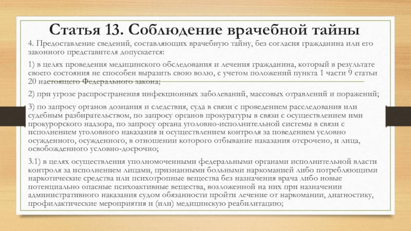 Слайд 27Статья 20. Информированное добровольное согласие на медицинское вмешательство и на