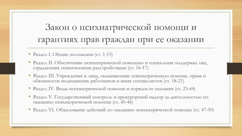 Слайд 15Закон о психиатрической помощи и гарантиях прав граждан при ее