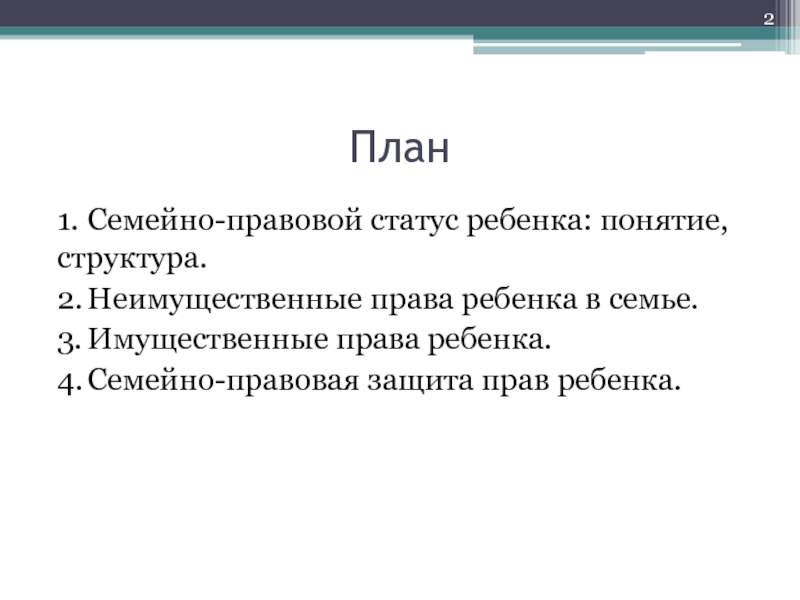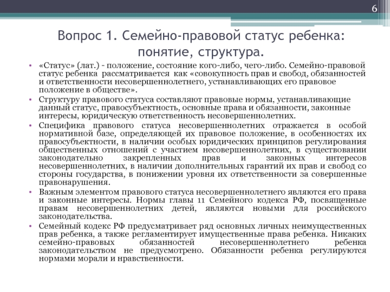 Слайд 6Вопрос 1. Семейно-правовой статус ребенка: понятие, структура.