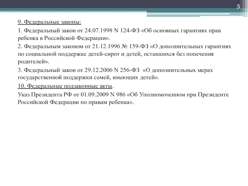 1. Федеральный закон от 24.07.1998 N 124-ФЗ «Об