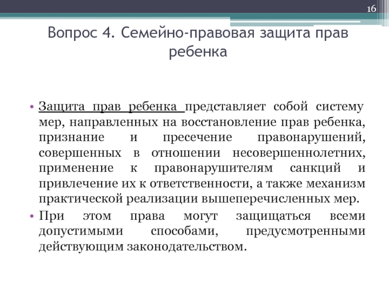Слайд 16Вопрос 4. Семейно-правовая защита прав ребенка