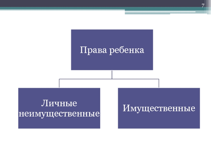 Семейный кодекс РФ предусматривает ряд основных личных неимущественных прав ребенка, а также регламентирует имущественные права ребенка. Никаких семейно-правовых обязанностей несовершеннолетнего ребенка законодательством не предусмотрено. Обязанности ребенка регулируются нормами морали и нравственности.