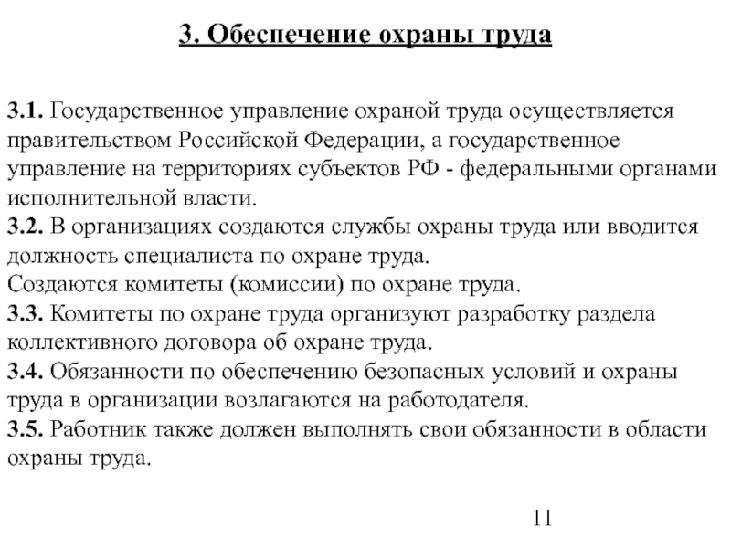 3.2. В организациях создаются службы охраны труда или вводится должность специалиста по охране труда.