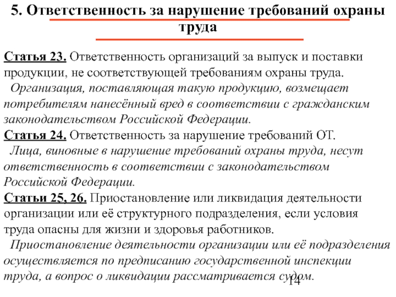 Слайд 145. Ответственность за нарушение требований охраны труда