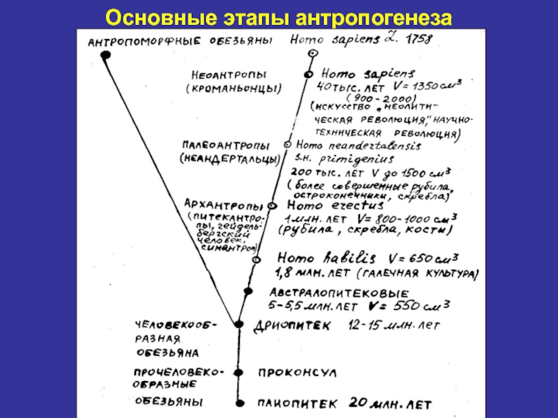 Слайд 8Основные этапы антропогенеза