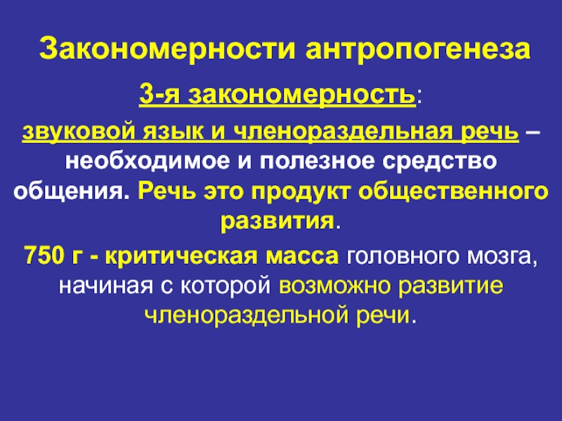 Слайд 10Закономерности антропогенеза