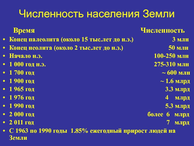 С 1963 по 1990 годы 1.85% ежегодный прирост людей на Земли