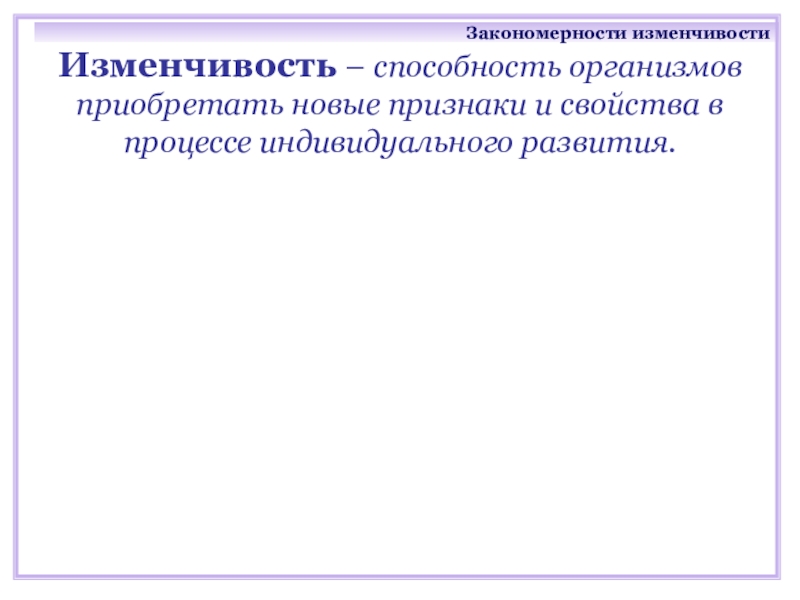 Наследуется не сам признак, а способность проявлять этот признак в определенных условиях, т.е. наследуется норма реакции организма на внешние условия.