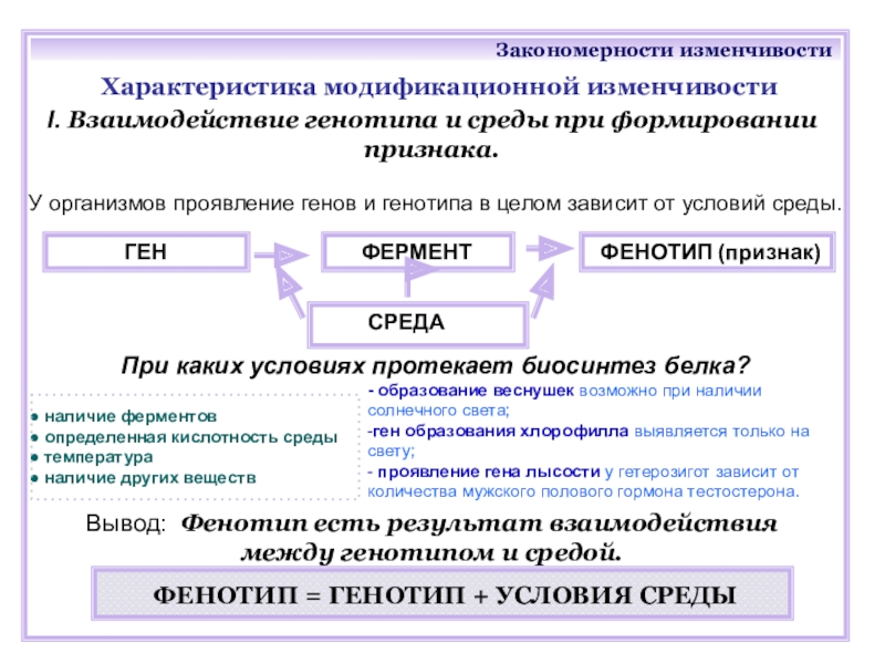 ФЕНОТИП = ГЕНОТИП + УСЛОВИЯ СРЕДЫ