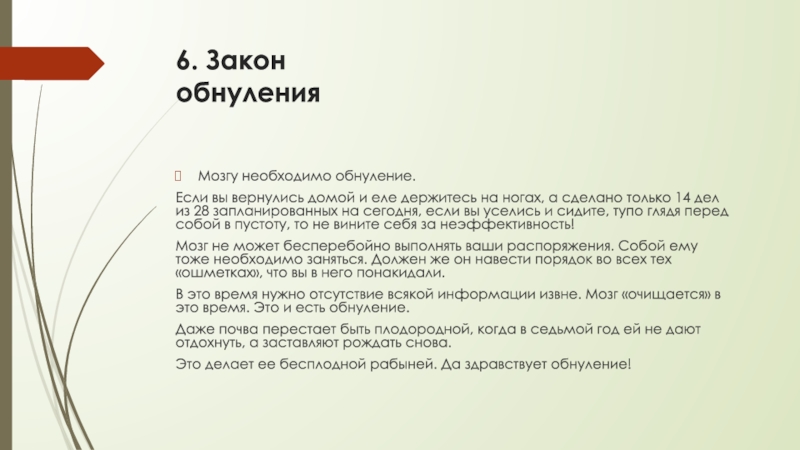 Мозг не может бесперебойно выполнять ваши распоряжения. Собой ему тоже необходимо заняться. Должен же он навести порядок во всех тех «ошметках», что вы в него понакидали.
