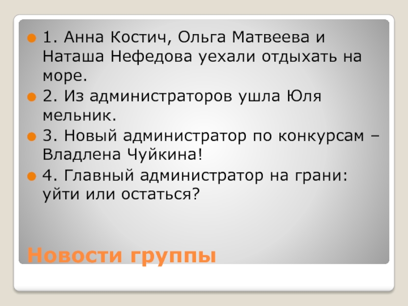 1. Анна Костич, Ольга Матвеева и Наташа Нефедова уехали
