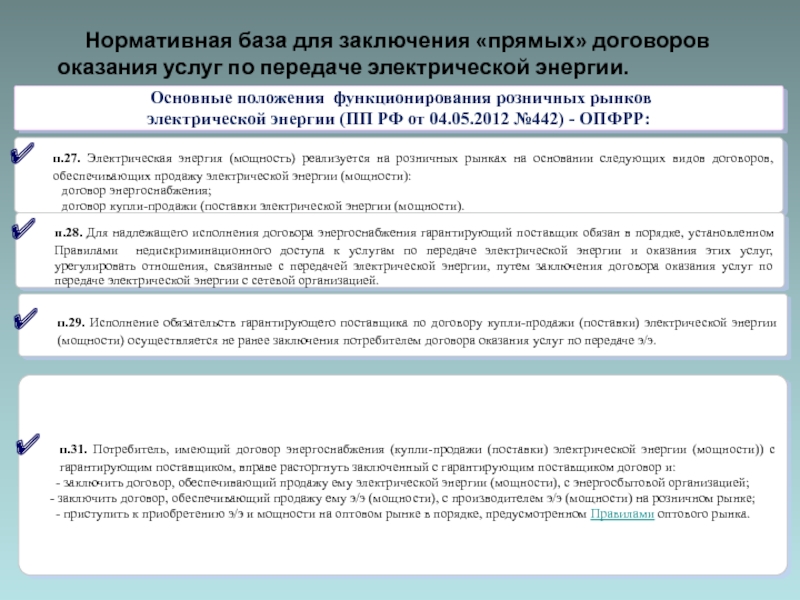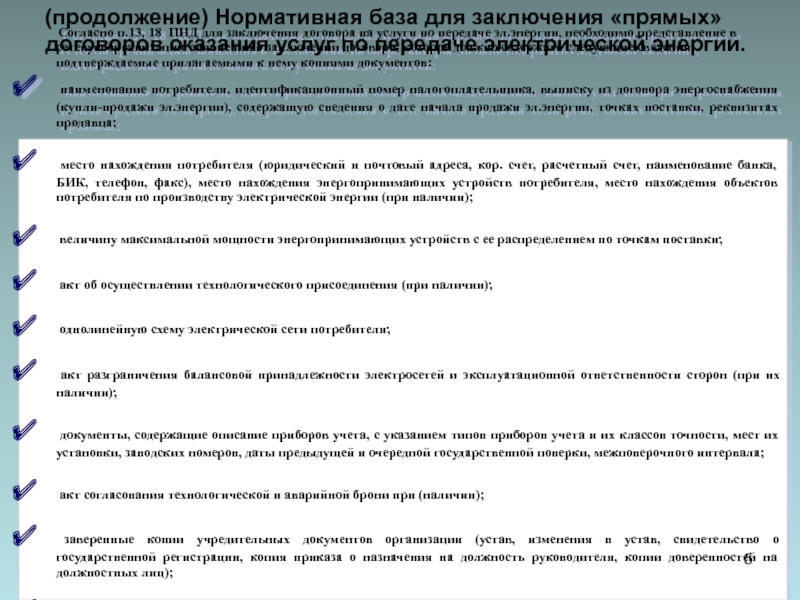 (продолжение) Нормативная база для заключения «прямых» договоров оказания услуг по передаче электрической энергии.