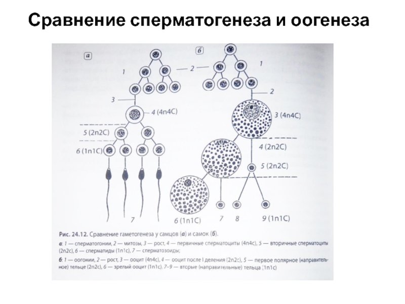 Слайд 3Сравнение сперматогенеза и оогенеза