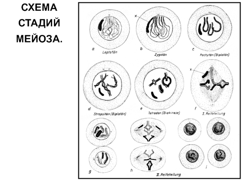 Слайд 6СХЕМА СТАДИЙ МЕЙОЗА.