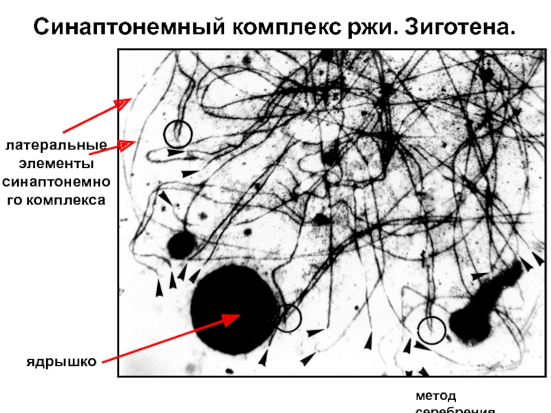Синаптонемный комплекс ржи. Зиготена.метод серебренияядрышколатеральные элементы синаптонемного комплекса