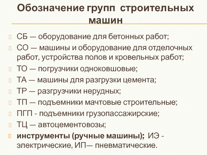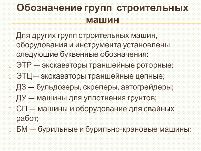 Обозначение групп строительных машин