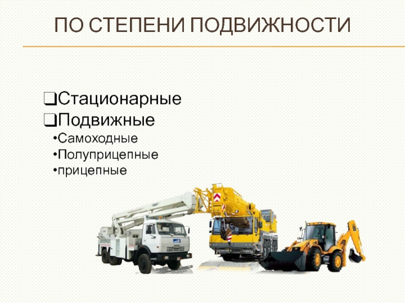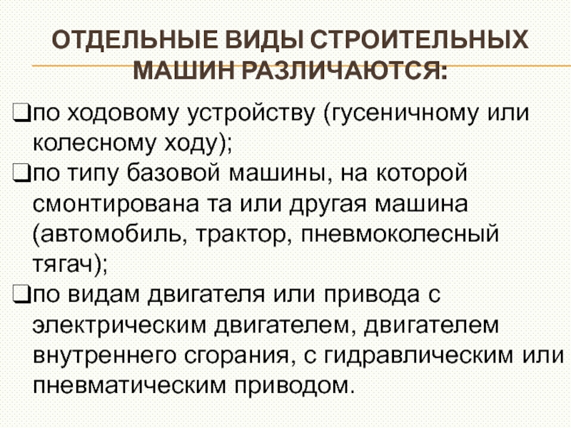 Слайд 9Отдельные виды строительных машин различаются: