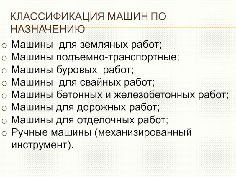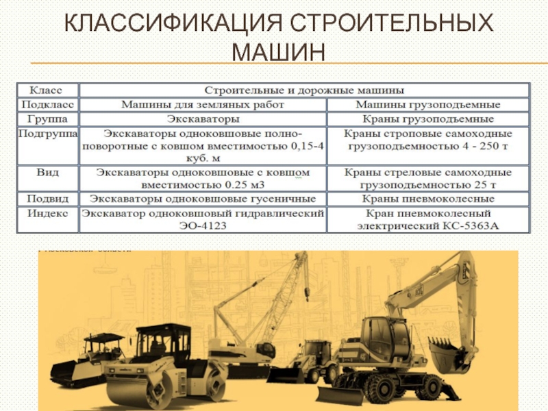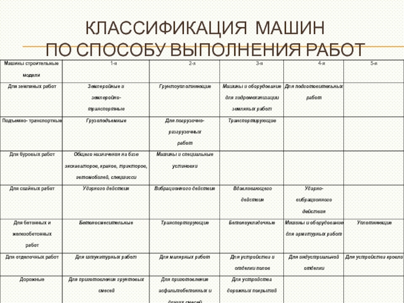 Слайд 4КЛАССИФИКАЦИЯ СТРОИТЕЛЬНЫХ МАШИН