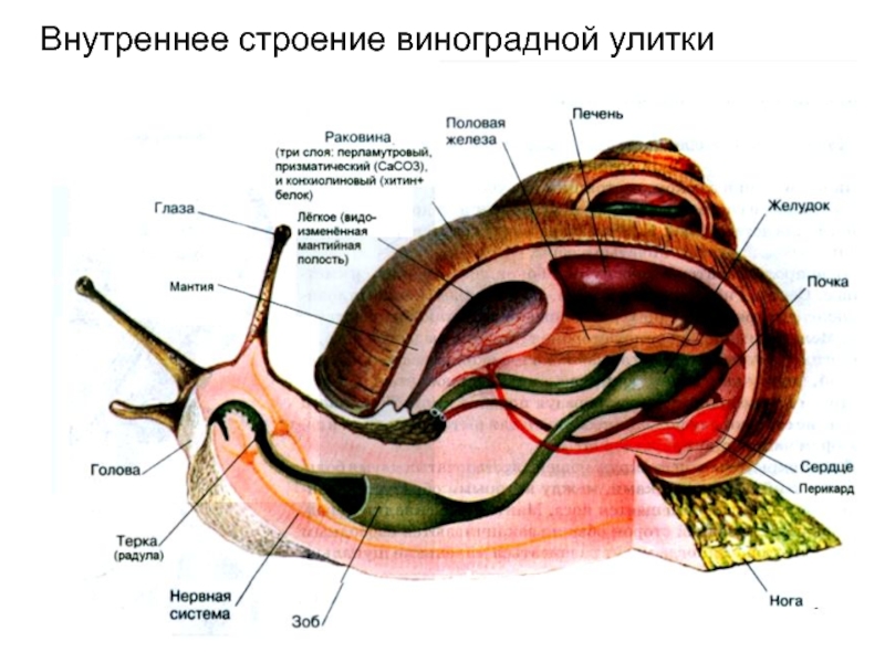 1. Изучить и зарисовать внешнее строение виноградной улитки.