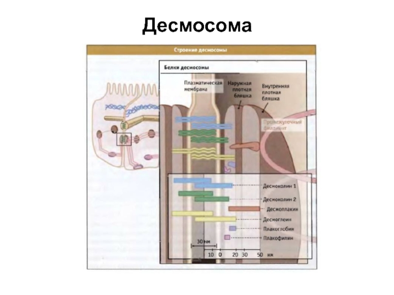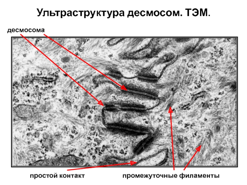 Слайд 25Ультраструктура десмосом. ТЭМ.