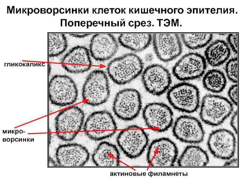 Микроворсинки клеток кишечного эпителия. ТЭМ