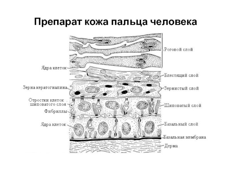 СМ Кожа пальца – шиповатый слой (десмосомы)