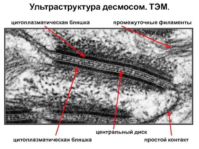 Слайд 26Ультраструктура десмосом. ТЭМ.