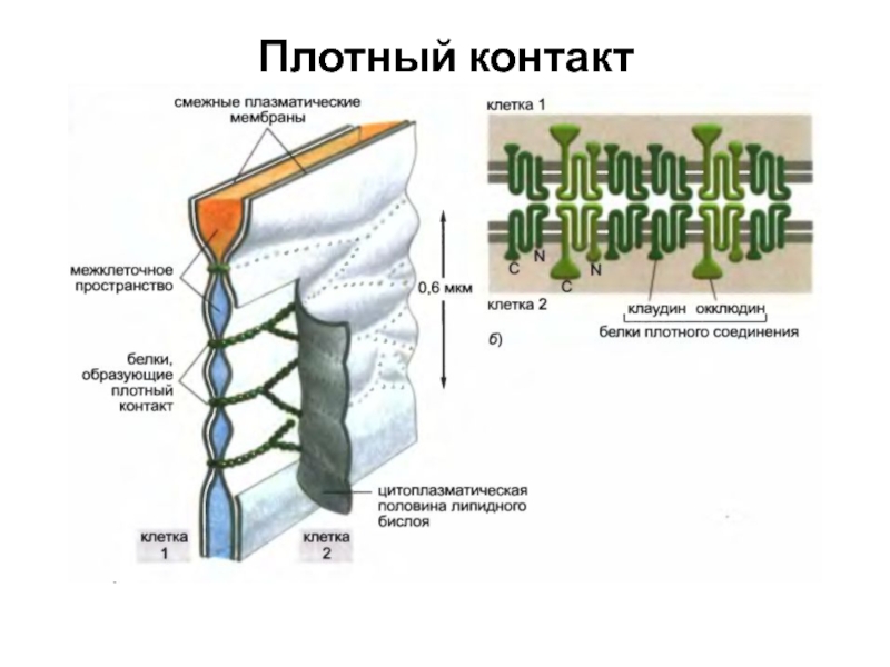 Слайд 21Плотный контакт. Метод замораживания-скалывания.