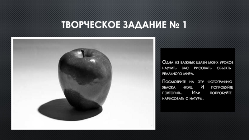 Творческое задание № 1Одна из важных целей моих уроков научить вас рисовать объекты реального мира. Посмотрите на