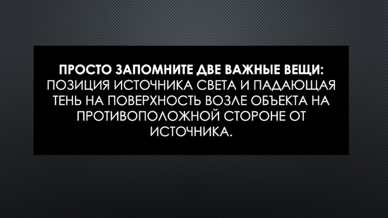 Слайд 5Просто запомните две важные вещи: позиция источника света и падающая