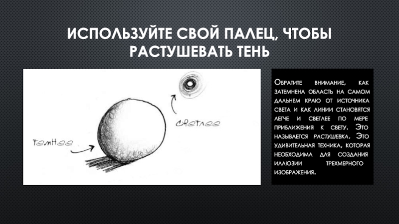 Слайд 7Используйте свой палец, чтобы растушевать тень