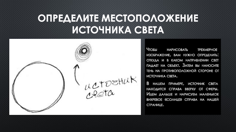вашем изображении. В этом уроке вы узнаете, как определить, где находится источник света, а  где тени объектов вашего рисунка. Давайте нарисуем трехмерную сферу.