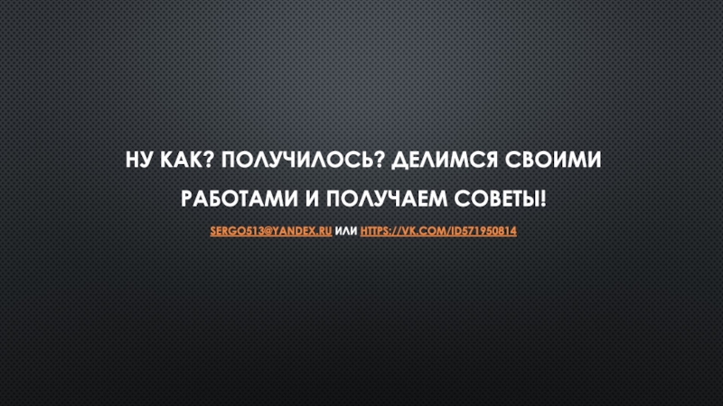 Слайд 10Ну как? Получилось? Делимся своими работами и получаем советы! sergo513@yandex.ru или