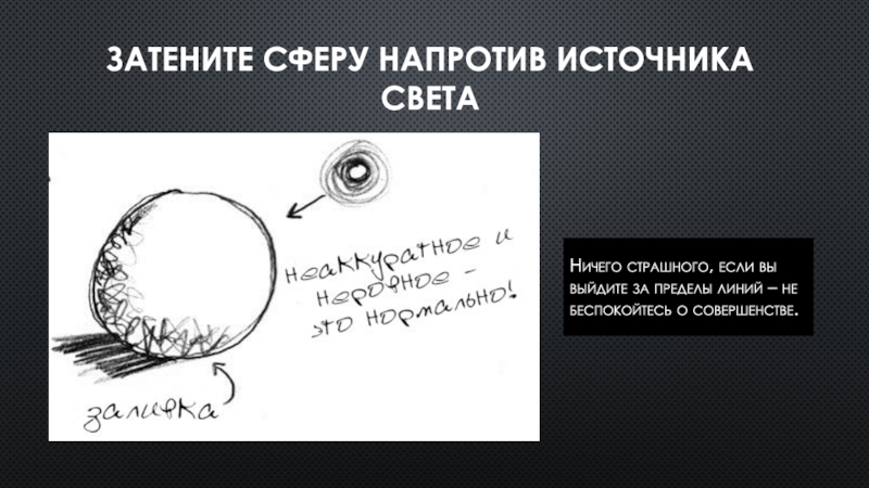 Затените сферу напротив источника светаНичего страшного, если вы выйдите за пределы линий – не беспокойтесь о совершенстве.
