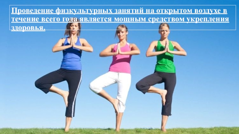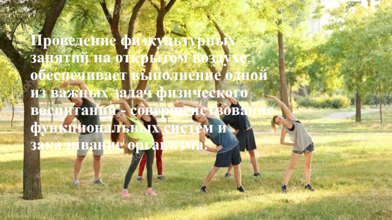 Слайд 2Проведение физкультурных занятий на открытом воздухе обеспечивает выполнение одной из