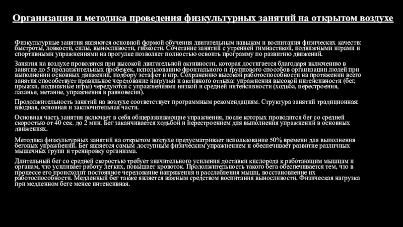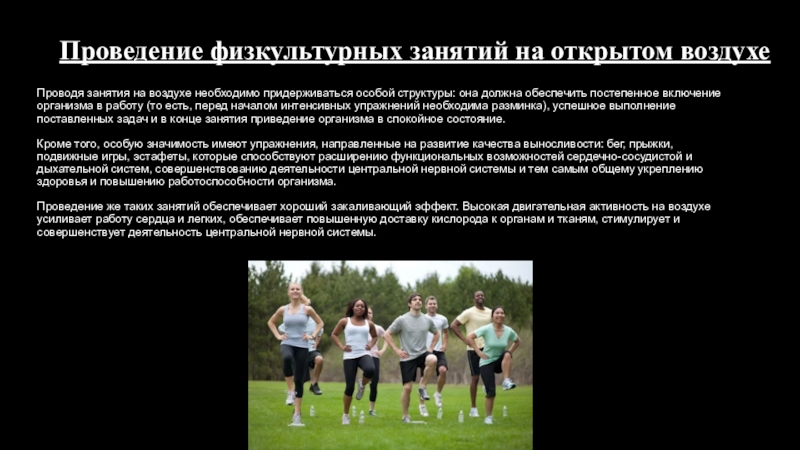Слайд 6Организация и методика проведения физкультурных занятий на открытом воздухе