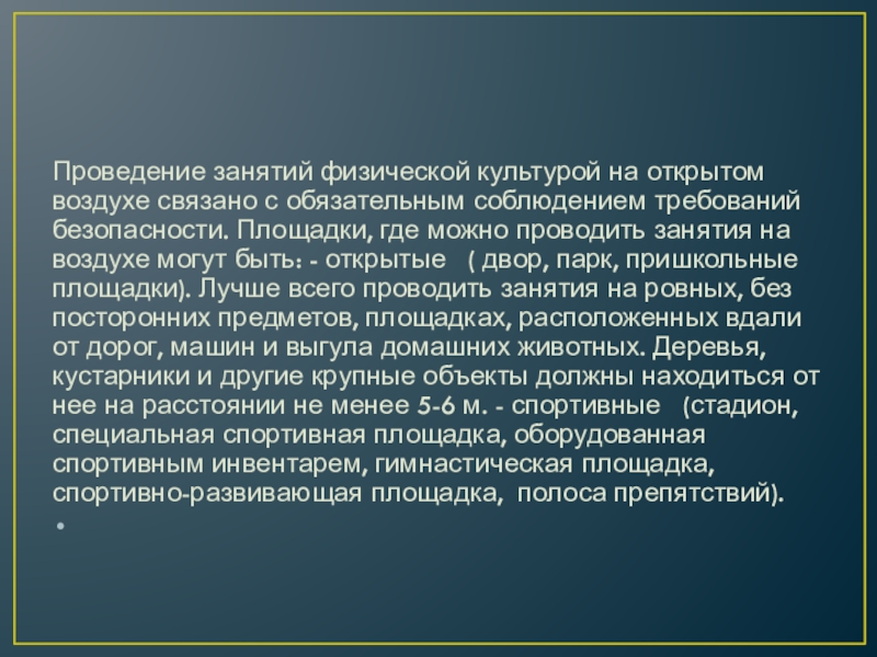 соблюдением требований безопасности. Площадки, где можно проводить занятия на воздухе