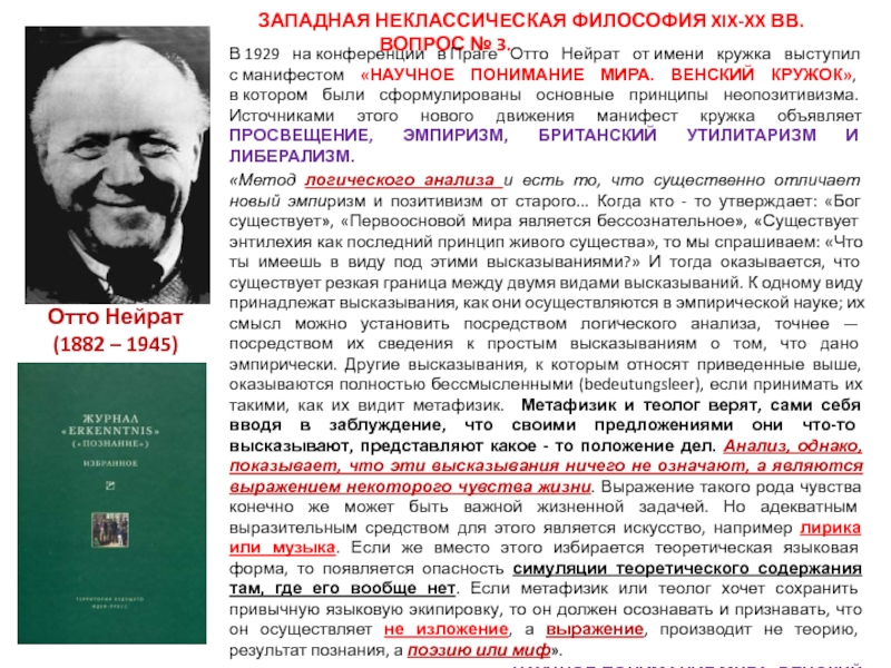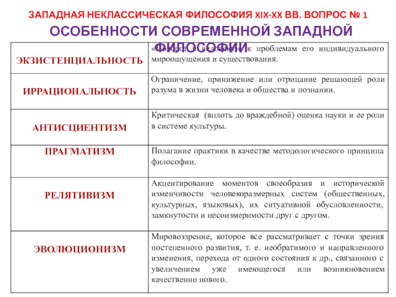 ЗАПАДНАЯ НЕКЛАССИЧЕСКАЯ ФИЛОСОФИЯ XIX-XX ВВ. ВОПРОС № 2.
