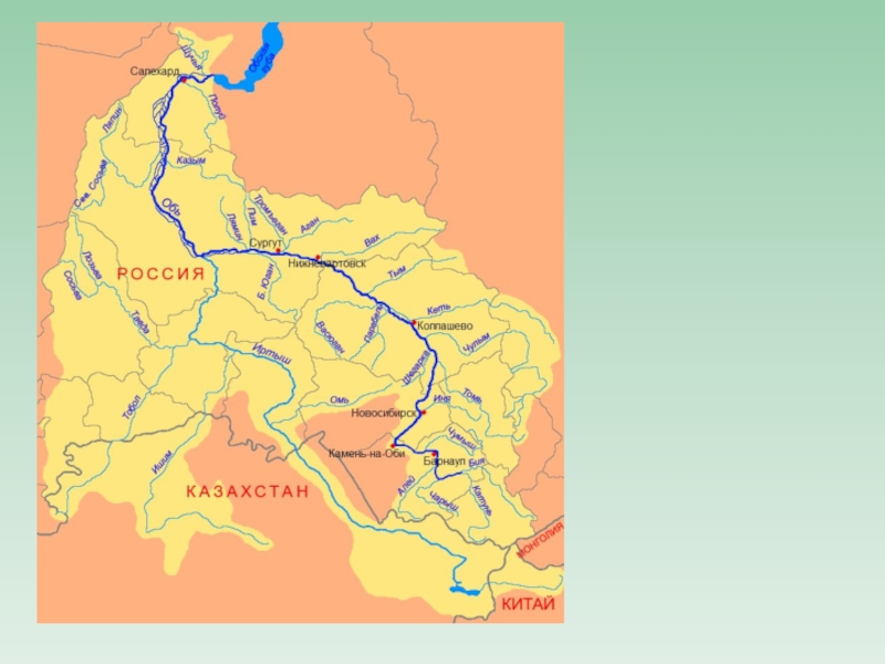 Слайд 54Столицы субъектов РФ расположенные на берегу реки Обь