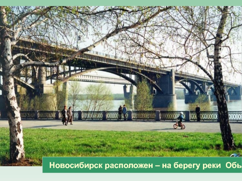 Слайд 26 Новосибирск расположен – на берегу реки Обь