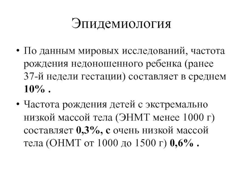 с экстремально низкой массой тела (ЭНМТ менее 1000 г) составляет 0,3%, с очень низкой массой тела (ОНМТ от 1000 до 1500 г) 0,6% .