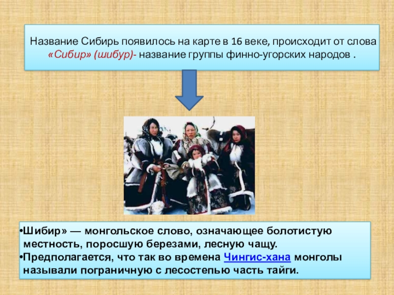слова «Сибир» (шибур)- название группы финно-угорских народов .