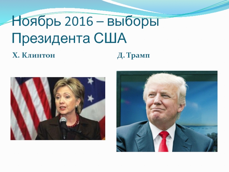 Слайд 30Ноябрь 2016 – выборы Президента США