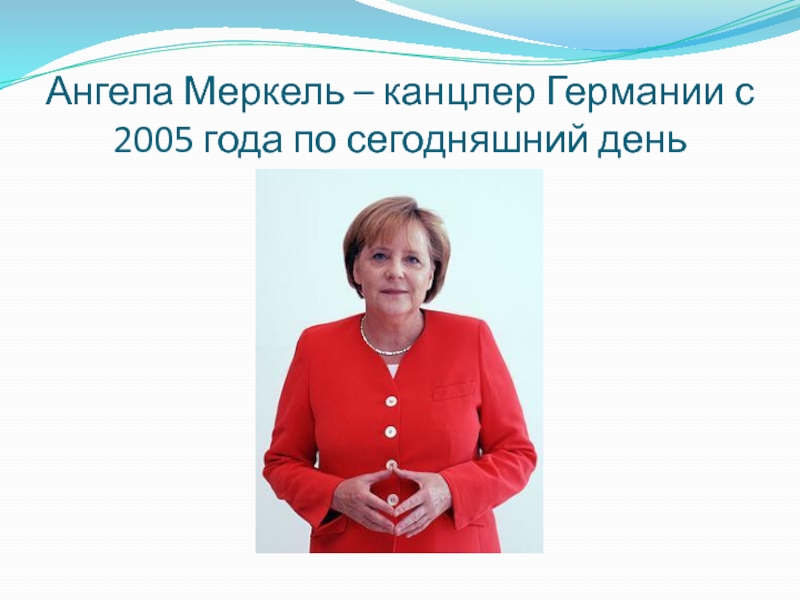 Слайд 34Ангела Меркель – канцлер Германии с 2005 года по сегодняшний
