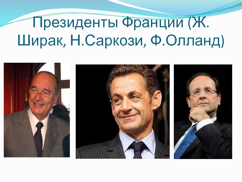Слайд 32Президенты Франции (Ж.Ширак, Н.Саркози, Ф.Олланд)