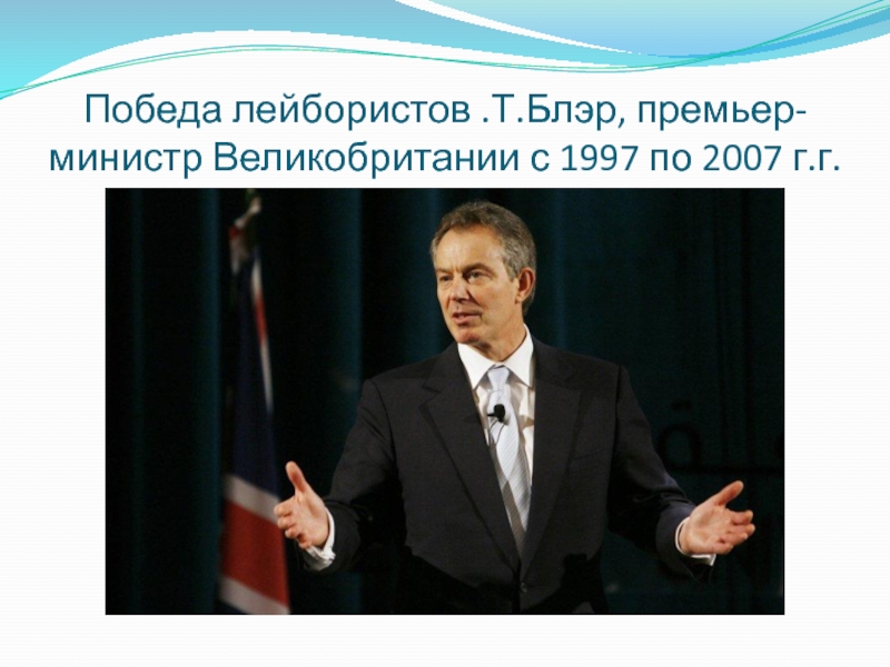 Слайд 36Победа лейбористов .Т.Блэр, премьер-министр Великобритании с 1997 по 2007 г.г.