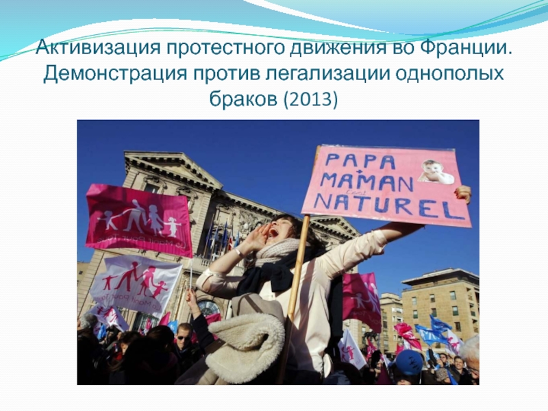 Слайд 26Активизация протестного движения во Франции. Демонстрация против легализации однополых браков