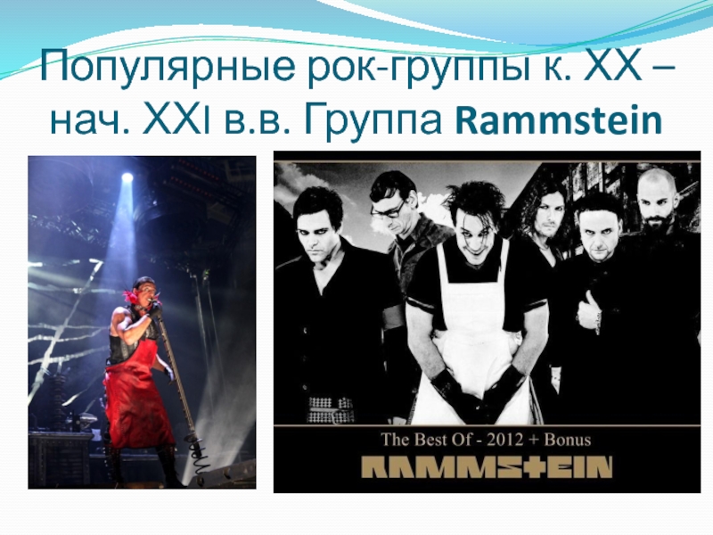Слайд 58Популярные рок-группы к. ХХ – нач. ХХI в.в. Группа Rammstein