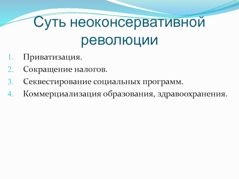 Слайд 480-90-е г.г. – неоконсервативная революция